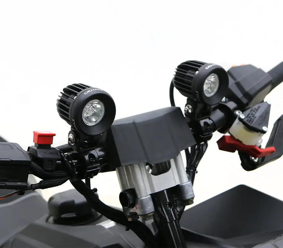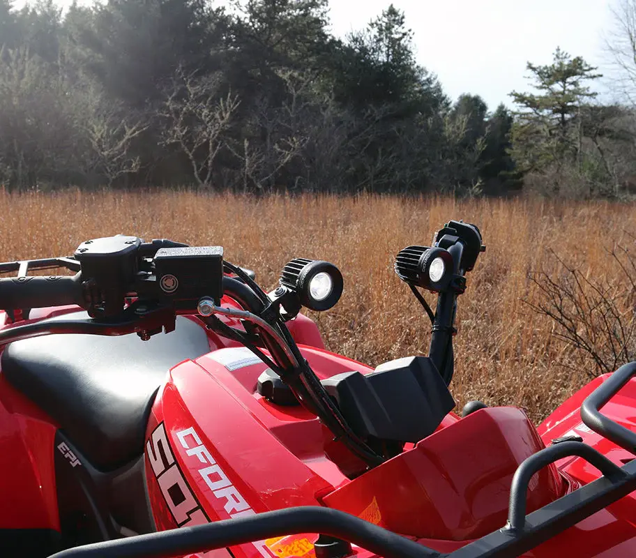 These clamps are intended for mounting lights to OEM or aftermarket crash bars, handlebars and frame tubes commonly found on adventure bikes, dual sport bikes, ATVs and snowmobiles. The clamps allow the lights to be positioned to the inside of the bars, ensuring they will be protected in a tip over.