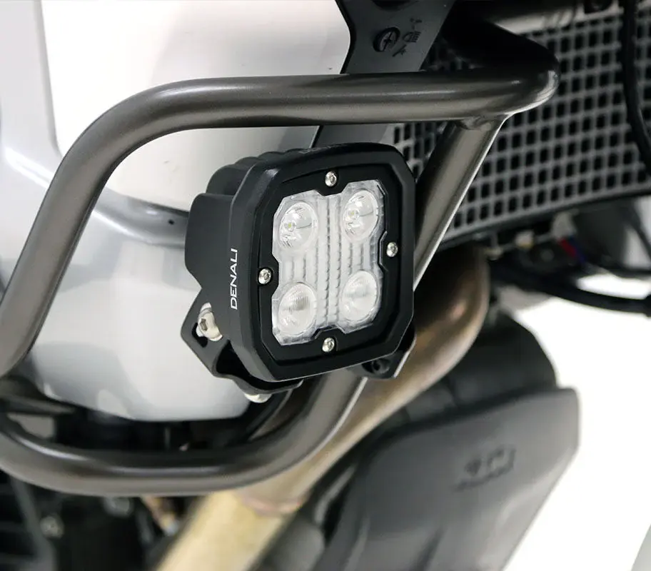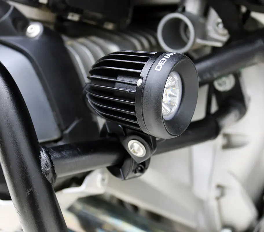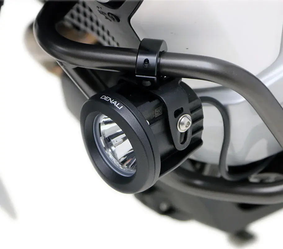 This DENALI Bar Camp Light Mount Kit allows fitment of any DENALI LED Lights to engine guards, crash bars, or any tube 21mm-29mm (0.826in-1.125in) in diameter. These light mounts have a unique octagonal inner profile that allow the clamps to securely grip a wide range of tube diameters and include an optional, fully rotatable mounting shelf to create a super versatile and robust light mounting solution.